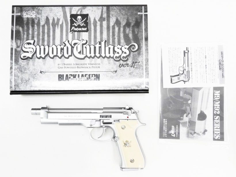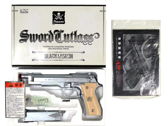 「ブラック・ラグーン」のレヴィが使用するM92Fカスタムガン。こちらは復刻前の製品。パッケージだけでなく表面の仕上げも変わっています。マットステンレスメッキ仕上げのこちらのほうが好みだったという方もおられるのでは?