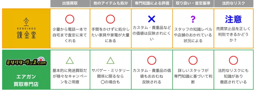 「大量のゴミ処分・不用品回収」のついでをお考えなら錬金堂、「大切なコレクションの売却」ならエアガン買取専門店。これが失敗しない選び方です。