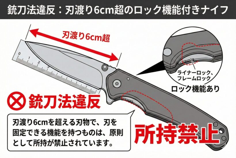 刃渡り6cm以上 ロック機能ありナイフなども原則所持禁止!